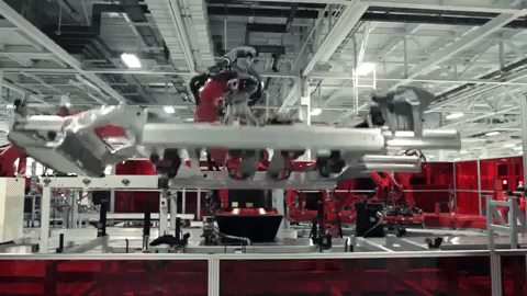 In factories, robotics is about using robots to perform precision and repetitive work. For example in 2018 Tesla told Bloomberg that its body line, one of the most complex parts of its production process after general assembly, was now almost fully automated: